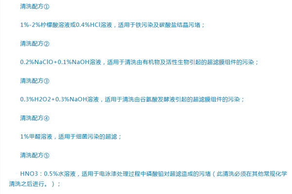 4-2、化学清洗:包括酸洗和碱洗两种方法。酸洗使用盐酸(HCl)或硫酸(H2SO4)等酸性清洗剂,而碱洗则使用氢氧化钠(NaOH)等碱性清洗剂。这些清洗剂可以溶解或分解膜表面的污染物,恢复膜的通透性。