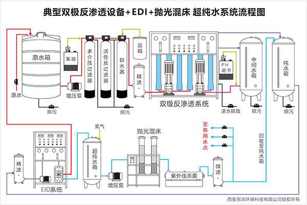 技术:二级反渗透装置采用的膜分离技术,能耗低、设备体积小、工艺简单、操作维修方便。