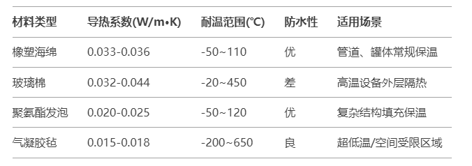 潮湿环境优先选用闭孔结构材料(如橡塑),避免吸水失效。