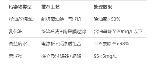 超滤+反渗透双膜法:出水可达回注标准,但需严格预处理(SDI<5)。