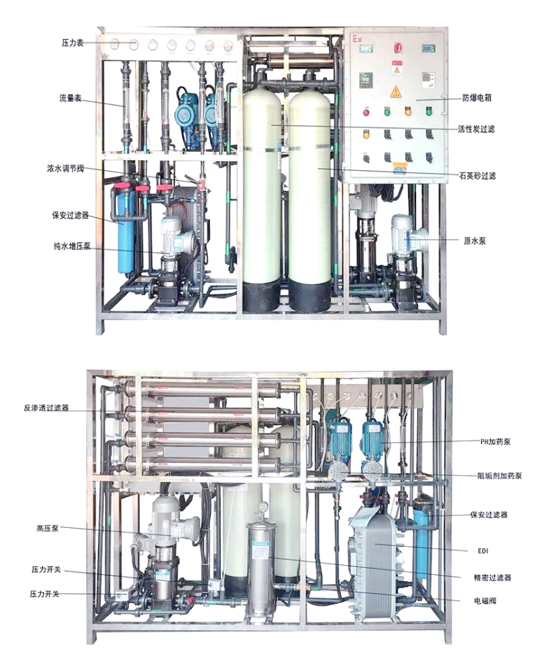 对水源(自来水、地下水等)进行全分析(pH、硬度、氯含量等),针对性设计预处理系统,避免后续膜污染或树脂中毒。