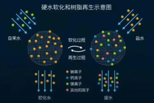 关键技术: 离子交换技术。设备内填充特殊树脂,水流经时,树脂优先吸附水中的钙镁离子,同时释放等量的钠离子(Na⁺),从而软化水质。