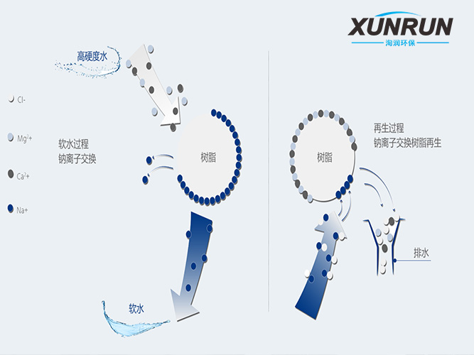 将适合水量的水流注入软化水设备中,通过软化水设备中的树脂颗粒,去除水中的离子,从而达到软化目的。软化效果是以去除硬度离子的效率来衡量的,也就是对硬度的去除率。