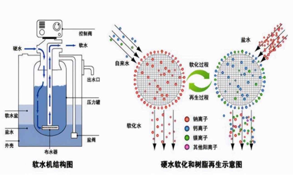 经过这一交换,出水中的钙、镁离子被有效去除,只剩下钠离子,水的硬度 thus 大大降低。