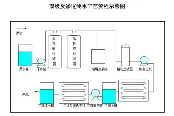 这是双级反渗透最核心的优势。单级反渗透的脱盐率通常在98%左右,而双级反渗透系统能将脱盐率提升至99.5%以上。这意味着水中的导电离子、溶解性盐类、重金属等杂质被去除得更加彻底,产水电阻率更高,水质接近超纯水标准。对于许多对水质有极端要求的行业来说,这微小的百分比提升是至关重要的。