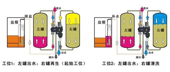 树脂软化水处理设备原理基于离子交换原理。树脂是一种能够与水中离子发生交换的材料。在树脂中存在着许多带电的阴离子或阳离子,可以与水中的钙、镁离子进行交互作用。当水通过树脂床时,钙、镁离子会与树脂中的阴离子或阳离子发生交换,进而被树脂吸附住,从而实现水的软化。树脂吸附住的钙、镁离子可以通过用盐溶液反向冲洗树脂床的方法进行再生,使树脂恢复吸附能力,实现反复使用。