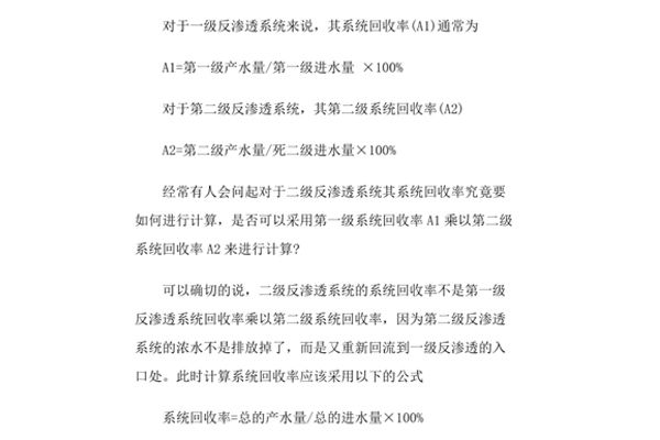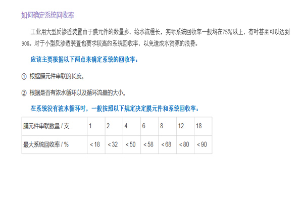 综上所述,在选择和使用反渗透设备时,要重视系统回收率的确定与分析。