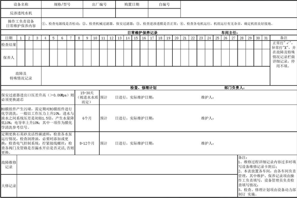 除了以上提到的数据,还有一些其他的数据也可以记录,比如反渗透设备的膜的清洗和更换记录、设备运行中的异常报警记录等。这些数据虽然可能不是每天都需要记录,但是它们对于设备的运行分析和故障排查非常有帮助。