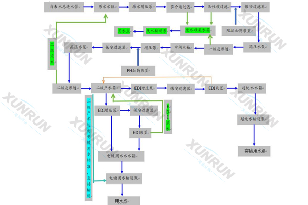 设备选型:选用了洵润环保的超纯水生产设备,包括高效反渗透膜、电去离子装置等,确保出水水质达到或超过国家相关标准。